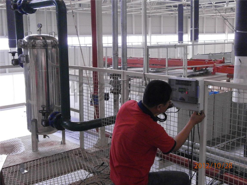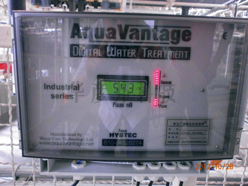 某机械设备公司于2012年10月在A3区、B49区距过滤器2米管径DN150、管径DN100处各安装的净元广谱感应水处理器一台,安装后运行稳定。