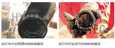 经过三个月的运行,于2009年2月19日打开加热炉出口端活节,经现场检验,净元广谱感应水处理器的阻垢、除垢效果明显。