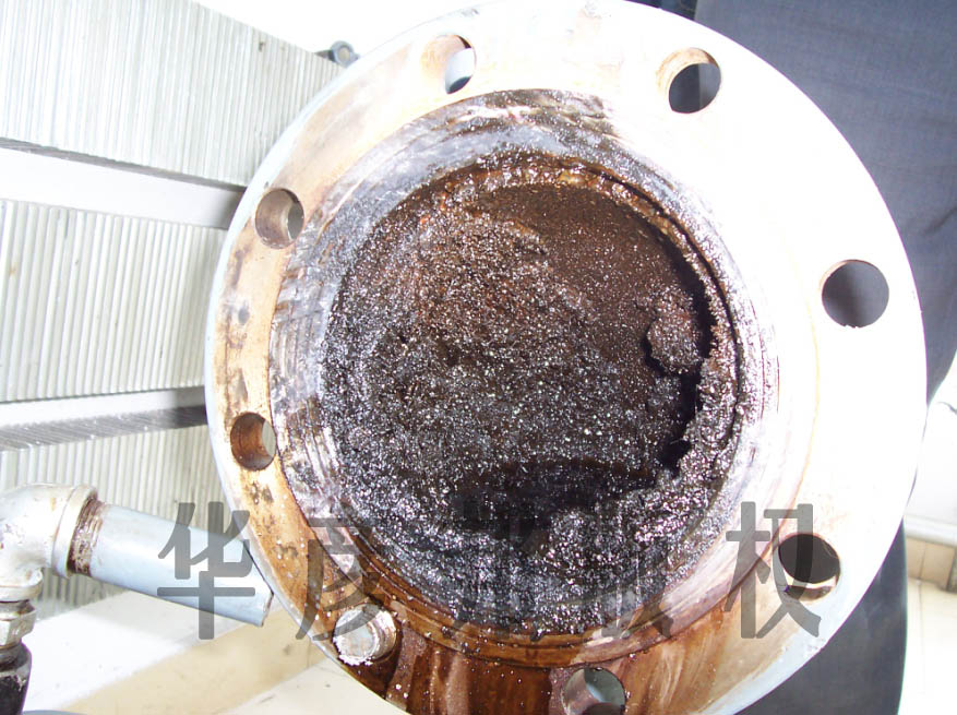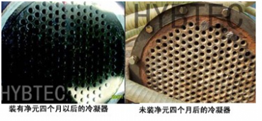 某中药制药公司中央空调系统每年运行时间从五月初到十一月中旬,由于水质硬度较高,沈阳某制药有限公司中央空调系统冷凝器内部结垢情况严重,在制冷过程中每个月都要将冷凝器拆开进行人工清洗(酸洗、用毛铜刷洗冷凝